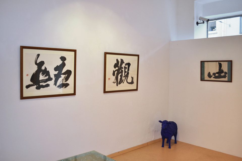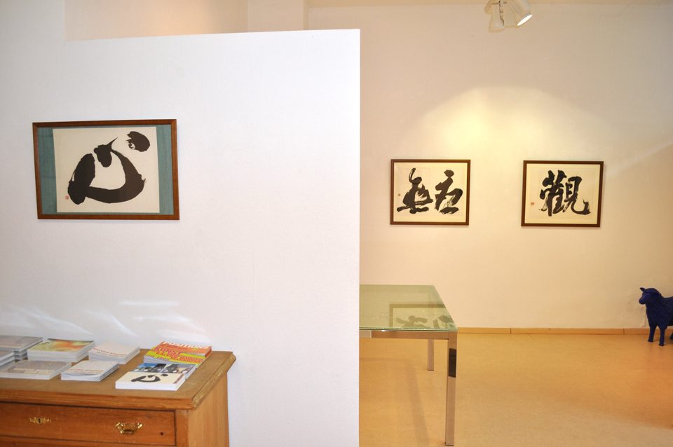 Wie bereits zu Beginn angedeutet, so geht es auch in dem Werk von Garyu Murayama über das Schreiben von Zeichen und Symbolen hinaus mittels Kalligraphie Gefühle, Geist und das innerste Selbst auszudrücken. Auf diese Weise werden Sensibilitäten und Emotionen mitgeteilt, mittels Tintenstift und Tuschestein zu Papier gebracht. Ich habe eben von Symbolen und Sensibilitäten gesprochen. Diese Aspekte weisen auch das Werk von Garyu Muramaya auf, das Werk, das immer auch Bezug auf den Buddhismus (die Erleuchtung) nimmt. Die Arbeit auf der Einladungskarte beispielsweise ist mit „Shin“ betitelt, was das „Herz“ meint. Das Herz steht im Buddhismus (Eins ist alles und alles ist eins) für Leben, Atmen, für die menschliche Aktivität. Es gibt hier in dieser philosophischen Glaubensrichtung keine Gottheiten wie in der zweiten großen Religion Japans, dem Shintoismus, einer Art Naturreligion, die auf eine Harmonie zwischen Mensch und Natur setzt, und an die ca. 800 Gottheiten kennt. Mit diesen Ausführungen möchte ich einmal mehr verdeutlichen, dass es in asiatischen Theoremen oder philosophischen Überbauten immer und zugleich auch mannigfaltige Untergruppen gibt. Und trotzdem kommen die Vertreter dieser vielfältigen Richtungen und Aufspaltungen immer friedlich miteinander aus.