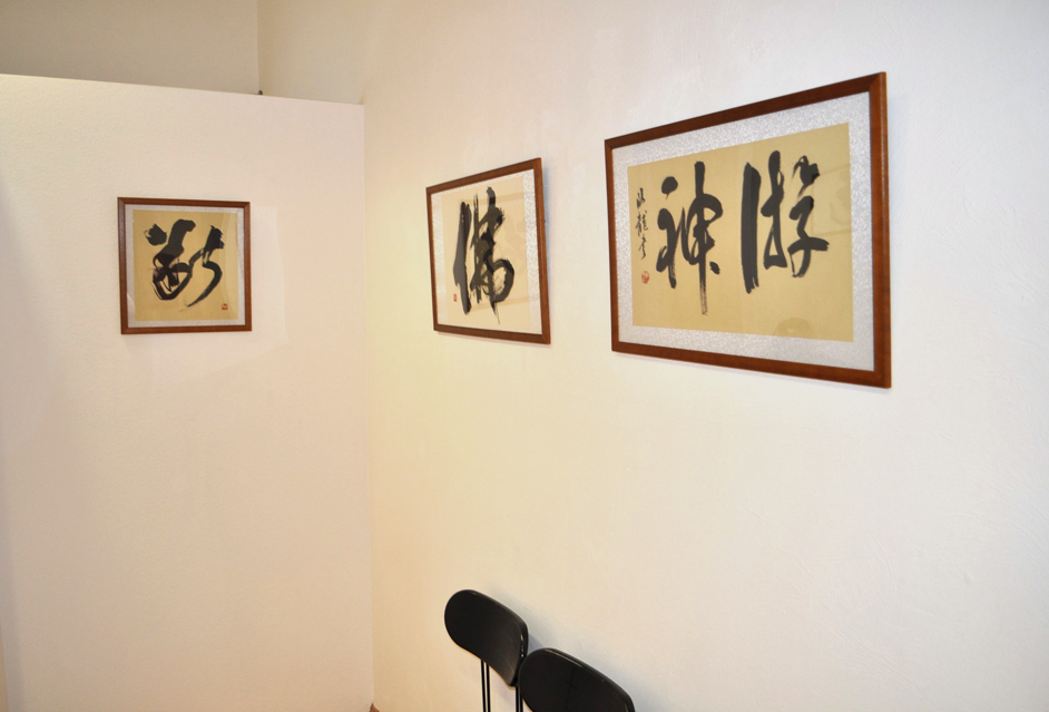 Das Bild in der Liste mit der Nummer 4 „Butsu“ versinnbildlicht ein zentrales Konzept im Buddhismus und symbolisiert die Erleuchteten und ihre Lehren; Nummer 7 „To“ bezieht sich auf das Ausdrücken oder Loslassen von Emotionen oder Verkrustungen, die in der Seele oder im Geist vorhanden sind, die ja eigentlich leicht und frei sein sollten. „Sou“ steht für das, was der jeweilige Schöpfer (Künstler*in) denkt und „Ai“ die Liebe. So hat jedes Schriftkunstwerk einen eigenen kreativen und ästhetischen Ausdruck nebst einer tiefer gehenden philosophischen Bedeutung. Das Kunstwerk als eindeutige Botschaft sozusagen. Und diese Botschaften sind auf der Bilderliste von Garyu Murayama aufgeführt, so dass Sie sich die Bedeutung der Arbeiten dem Besucher erschließen…